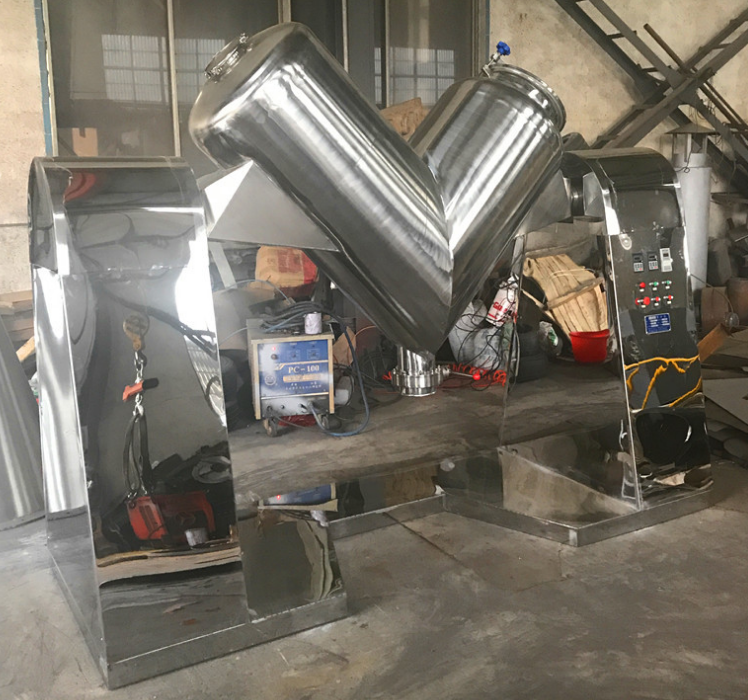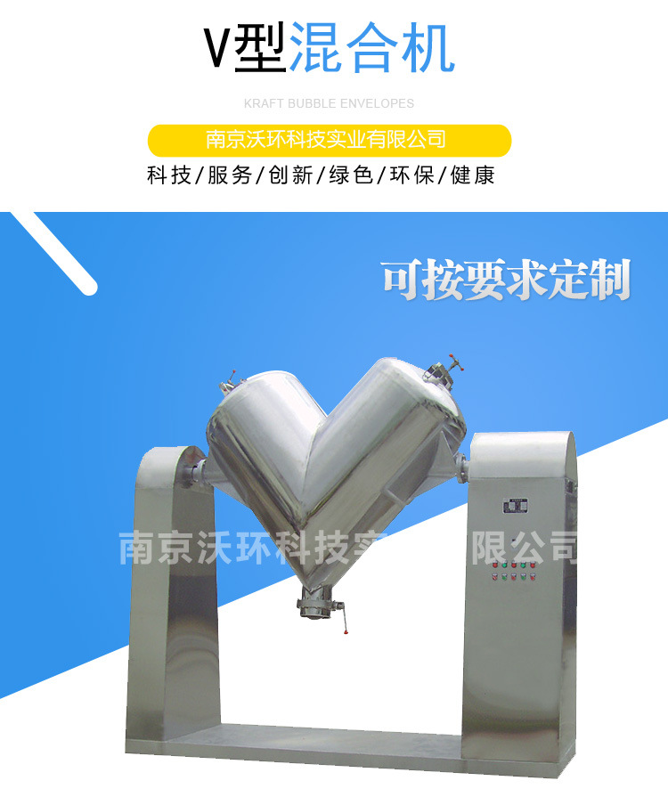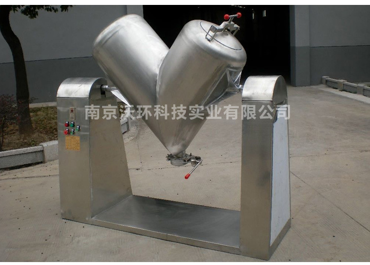 產(chǎn)品概述: 本機(jī)適用于制藥、化工、食品的干粉狀、顆粒裝物料的混合。該機(jī)混料筒結(jié)構(gòu)獨(dú)特,混合均勻,效率高,不積料。整機(jī)結(jié)構(gòu)簡(jiǎn)單,操作容易。外表面和物料接觸部分均采用優(yōu)質(zhì)不銹鋼制造,造型美觀,維護(hù)、清洗方便。 應(yīng)用場(chǎng)景: 本機(jī)用于制藥及其它行業(yè)的粉狀或粒狀物料混合之用。本系列混合機(jī)有高效混合型和普通混合型兩種,高效型混合機(jī)主要對(duì)較細(xì)的粉粒或?qū)δ骋恢髁虾枯^少的物料均能混合均勻;普通型混合機(jī)主要適用于一般物料或產(chǎn)量較大的企業(yè)使用。筒體光滑無(wú)死角、整機(jī)采用不銹鋼材料制作、且外型美觀等特點(diǎn)。 工作原理: 本機(jī)一端裝有電機(jī)與減速機(jī),電機(jī)功率通過(guò)皮帶傳給減速機(jī),減速機(jī)再通過(guò)聯(lián)國(guó)器傳給V型桶。使V型桶連續(xù)運(yùn)轉(zhuǎn),帶動(dòng)桶內(nèi)物料在桶內(nèi)上、下、左、右進(jìn)行混合。 材質(zhì)及結(jié)構(gòu): 1、 混合機(jī)的筒體采用2.5mm304-2B不銹鋼材料制作,外包采用1.2mm304-2B的不銹鋼材料制作,支架采用5#槽鋼。 2、混合的出料閥選用全不銹鋼精加工而成,并在連接處采用定型硅橡膠材料密封,確保機(jī)器在工作時(shí)的密封效果。 3、混合機(jī)的進(jìn)料口采用選進(jìn)的快開(kāi)結(jié)構(gòu),使用戶(hù)在進(jìn)料和清洗時(shí)操作簡(jiǎn)便。 4、混合機(jī)筒體兩側(cè)拼縫處加焊兩塊不銹鋼引板并采用拋光處理,使筒體內(nèi)無(wú)一處死角,確保混合機(jī)在混合、清洗時(shí)能夠達(dá)到理想的效果。 5、混合機(jī)內(nèi)設(shè)有強(qiáng)制攪拌裝置。